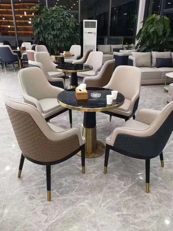 | Material: | marble, pu/ leather cover with wood frame | Product name: | marble coffee shop Dining Table chair sets |