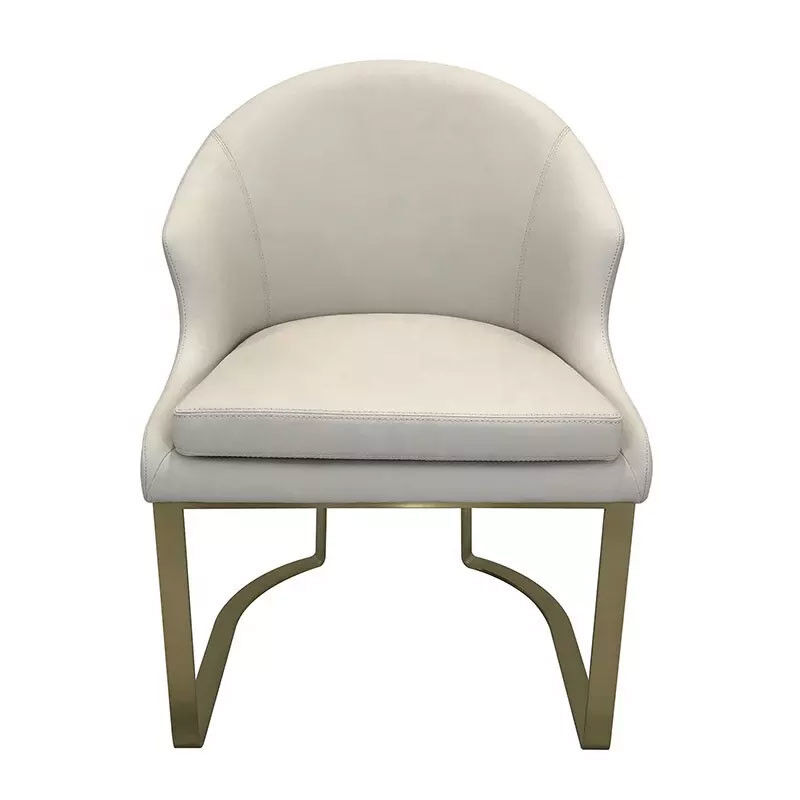Luxury Gold Stainless Steel Metal Frame Leg Beige Leather Dining Chair