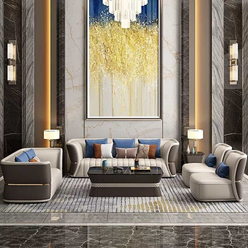 Italian Luxury Style Living Room Furniture Sectional Leather 1+2+3 Sofa Set